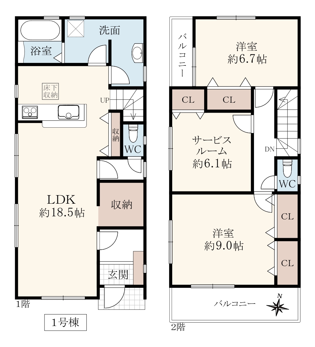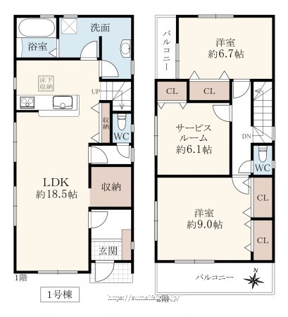 階数 区分 広さ 1F LDK 18.5帖 2F 洋 9.0帖 2F 洋 6.7帖 2F S 6.1帖 - 駐車場
