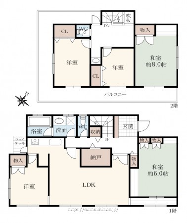 階数 区分 広さ 1F LDK - 1F 洋 - 1F 和 6.0帖 2F 洋 - 2F 洋 - 2F 和 8.0帖 - 駐車場