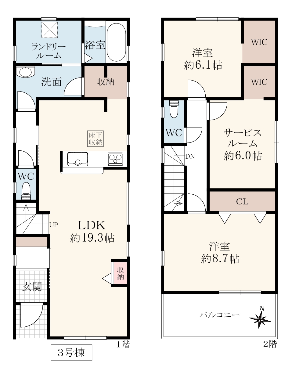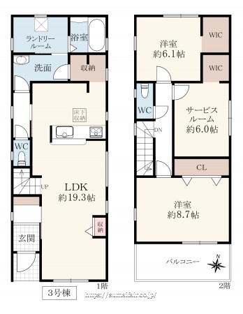 階数 区分 広さ 1F LDK 19.3帖 2F 洋 8.7帖 2F 洋 6.1帖 2F S 6.0帖 - 駐車場