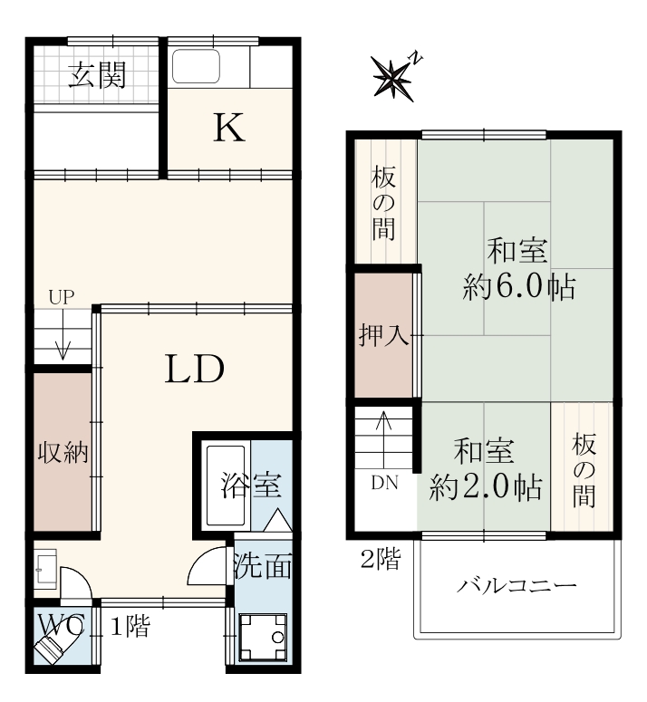 階数 区分 広さ 1F LDK - 2F 和 8.0帖 - 駐車場
